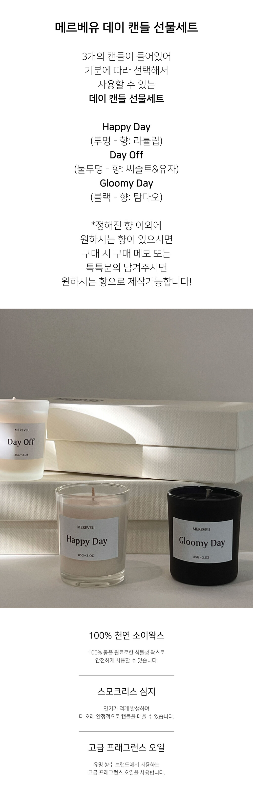 메르베유 데이캔들 선물세트 소이캔들 3온스 세트 인테리어 집들이선물