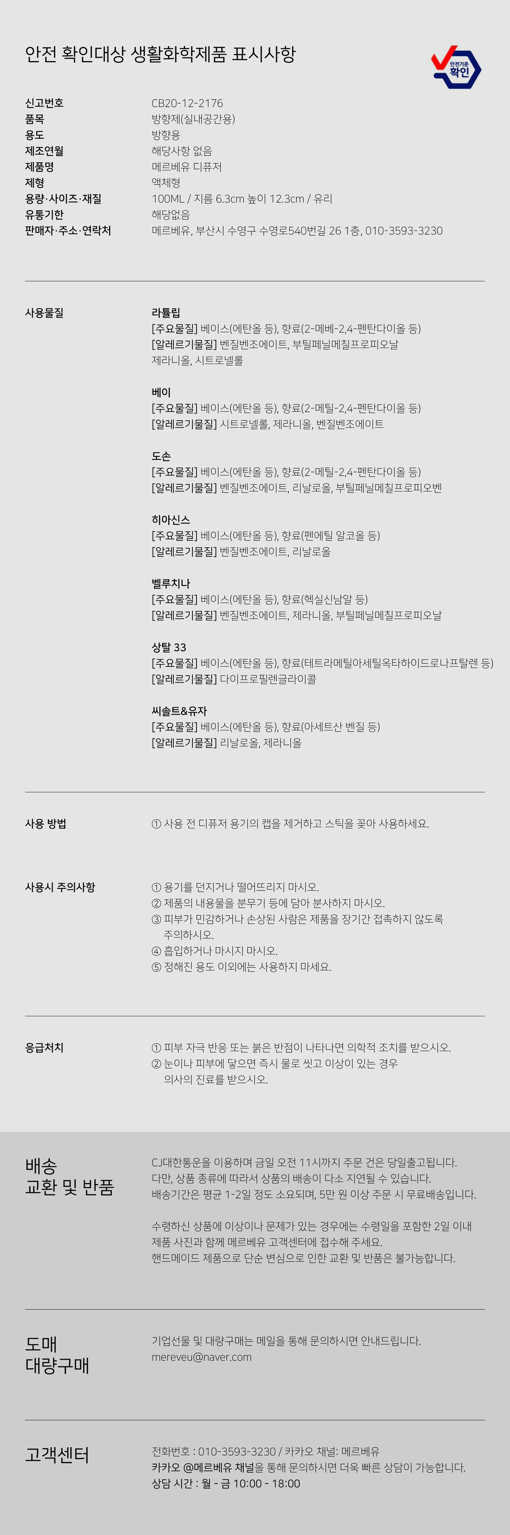 메르베유 디퓨저 실내방향제 화장실 사무실 100ml