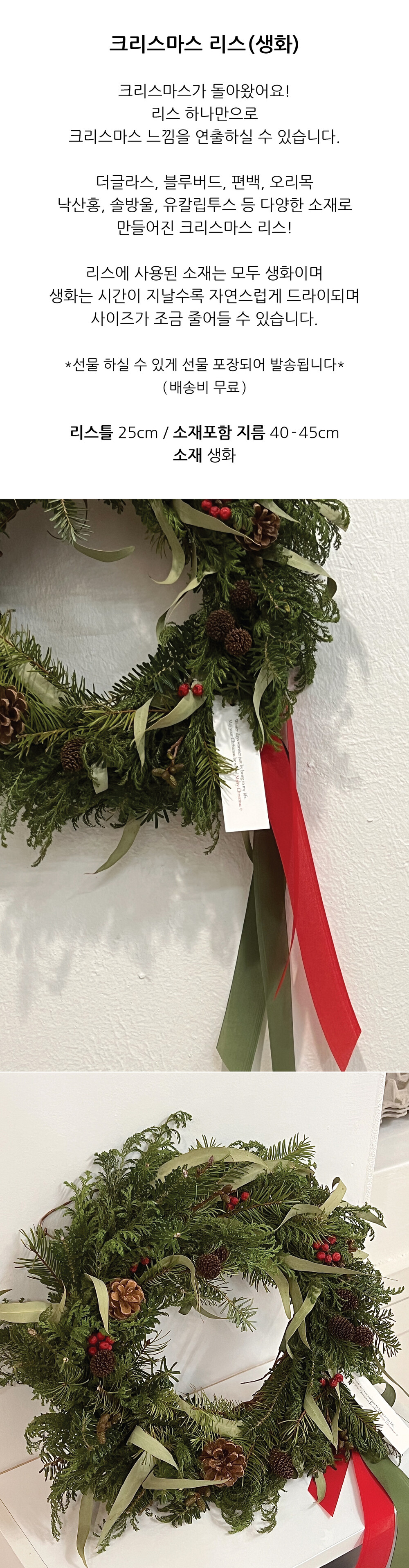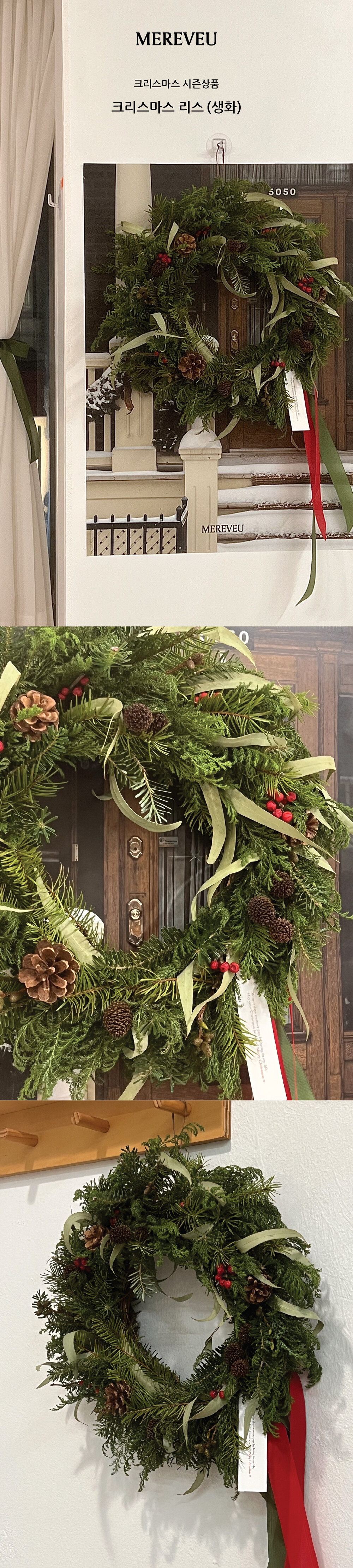 크리스마스 리스 생화 편백 매장 인테리어소품 벽장식