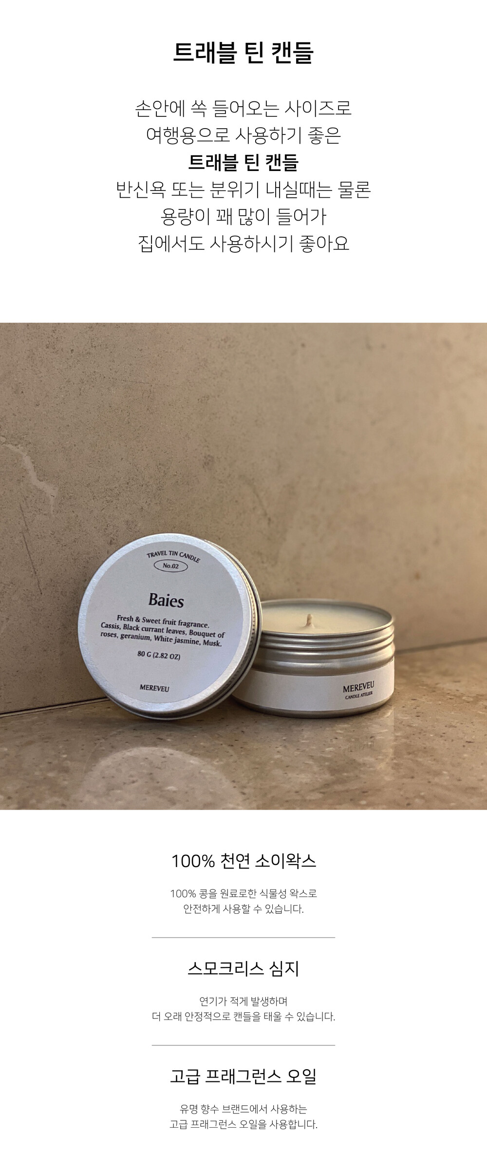 메르베유 트래블틴캔들 여행용캔들 캠핑캔들 답례품 휴대용캔들